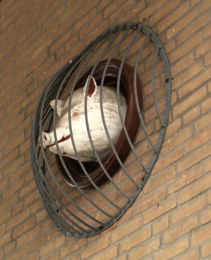 Op het Hildo Kropplein, waar nu een elektriciteitshuisje staat in de vorm van een blik Corned Beef, was tot 1985 het Abattoir gevestigd. Dit abattoir annex veemarkt aan de Cruquiusweg werd in 1887 in gebruik genomen. De veemarkt bestond uit afzonderlijke afdelingen voor runderen, paarden, kalveren, schapen en varkens. Er was hoofdzakelijk aanvoer van slachtvee, hoewel er ook handel in melkvee was. In 1987 werd begonnen met woningbouw op het terrein van de veemarkt. Naast het blik Corned Beef van Carolien Feldbrugge uit 1995 herinnert even verderop, onder de doorgang van de woningen, een varkenskop ook aan het voormalig gebruik van het gebied.